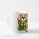 Navidades de corte diseño de corgis jugando en la caja con decoraciones.