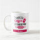 Diseño mínimo con la cita que corro en café y Navidades animan, texto en negro y rosa. Con tu nombre en rosa y blanco