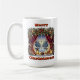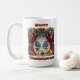 Escena de Navidades encantadora enmarcada por elegantes cortinas rojas y guirnaldas de pino. Los baubles dorados, las velas y las cajas de regalo crean un resplandor cálido a medida que los verdes nevados brillan a lo lejos, dando vida a la magia de las vacaciones.