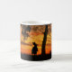 Una taza divertida de un vaquero en su caballo persiguiendo a un cabestro al atardecer.