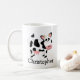 Coffee mug cow design. You can customise this mug with any text of your choice. Should you require any help with customising then contact us through the message link on this page. Cow design personalised coffee mug.