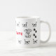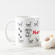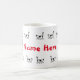 Si no eres una loca dama de gatos tal vez conozcas a alguien que sí lo es. ¡Esta taza podría ser un regalo ideal para alguien difícil de comprar para el que le encantan los gatitos! Dos filas de gatos negros y blancos, una alrededor de la parte superior, una en la parte inferior, huellas de pata y la frase de dama de gato loca. En el frente central va el nombre de la loca dama del gato. Puede cambiar el color y el estilo de la impresión para adaptarlo. Guay, idea única para un Navidad o regalo de cumpleaños.