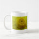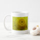 El centro de un crisantemo amarillo con el texto: "ten un buen día".