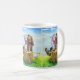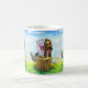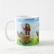 En la parte superior de un tronco de árbol se exhiben dos adorables cabras bebé flanqueadas por un pato y un gallo. Inspirado por los adorables animales de granero de mi primo. Por Amanda Diehl, Diseños Paxdomino