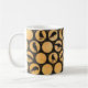 Esta taza de café está llena con un divertido patrón de Halloween de barro negro y lunas amarillas llentas. Perfecto para una noche aterradora. /rwd/h