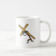 Una figura cristiana de palos con una corona de espinas lleva el Crucifijo. El diseño tiene la intención de mostrar respetuosamente el Mensaje de Pascua.