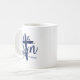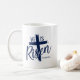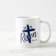 La taza de café se muestra en azul marino y blanco con una impresión de Él ha Resucitado. Personalice este artículo o cómprelo tal como está. Imagen licenciada