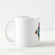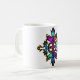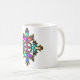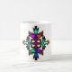 Una vibrante taza de cerámica con un colorido diseño de cruz tribal. Este patrón artístico único aporta una energía audaz y moderna a tu cocina u oficina."