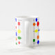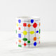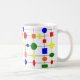 Esta taza tiene un diseño Bauhaus de una rejilla con formas en rojo, amarillo, naranja, verde y azul trazadas sobre ella.