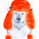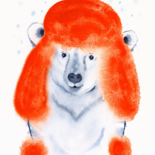 Cubo de oso Polar en acuarela gorra de invierno rojo de la artista Zaira Dzhaubaeva.