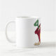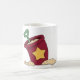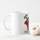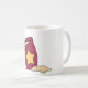 Una cubeta roja y una pala cavando arena en la playa. Este diseño se ve realmente efectivo en este Mug
