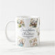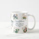 Revive el placer y el encanto de los queridos "doce días de Navidades con nuestra tradicional taza de café de vacaciones. Rodeada de ilustraciones pintorescos de una perdiz en un peral, dos palomas de tortuga, hasta los 12 tambores tamborileando, coronada con el dicho "cuenta regresiva a los navidades", el año, y tu apellido,