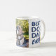 Mejor Papá Perro Que Haya Nacido. Una taza fotográfica personalizada de tu mejor amigo de piel. Celebra con este divertido y sincero diseño de tipografía de medallas decir Feliz Día del Padre de manera única! Con letras azules y una medalla de pata de perro dorado, esta taza es la manera perfecta de mostrar aprecio por el asombroso papá perro en tu vida. Personalízalo con una imagen de perro o cachorro para hacerlo aún más significativo. Ya sea por el Día del Padre, su cumpleaños, o simplemente porque, esta taza con tema de perro es una gran manera de honrar su amor y cuidado. Obra de arte por Ana Garza/Kardz Studio. Si tiene alguna pregunta, por favor no dude en contactarme a través del Chat Zazzle.