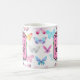 Un magnífico regalo personalizado de tazón de café para un miembro de la familia o un mejor amigo. Mariposas acuáticas en tonos pastel y bonito. El texto se edita fácilmente utilizando la plantilla proporcionada.