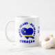 Stylish CURAÇAO Coffee Mug with CUSTOMIZABLE TEXT. The words read SMALL ISLAND BIG HEART and the CUSTOMIZABLE TEXT in the middle reads 2026 SOCCER GIANT-KILLERS LOADING. Design shows Curacaoan flag inside a heart, with the map outline of the island on top. Perfect CURAÇAO 'underdog' soccer Coffee Mug when watching Dutch, national and international soccer football matches. Ideal show of patriotism during world soccer tournaments. Add a name and message for that special, personal touch. Buy matching couple tees or matching group shirts for the family.