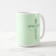 Esta taza presenta una cruz verde claro con un verso de la Biblia curadora en la parte delantera y trasera. El texto es personalizable.