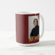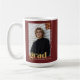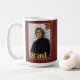 Design a modern graduation keepsake mug for your graduate. Features bold typography and a fresh layout. Personalize with a photo, year, name, and school. Design repeats automatically on the other side of the mug. Shown in trendy red and gold, though all colors are editable. © Kimbellished, LLC
