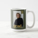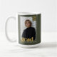 Design a modern graduation keepsake mug for your graduate. Features bold typography and a fresh layout. Personalize with a photo, year, name, and school. Design repeats automatically on the other side of the mug. Shown in trendy olive green and gold, though all colors are editable. © Kimbellished, LLC