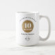 Celebrate dedication in style with this personalized gold 10 year service award mug. Featuring a bold metallic-look emblem, customizable employee name, and company logo, it’s the perfect way to honor workplace achievements and boost team morale. Ideal for employee appreciation, corporate anniversaries, and recognition events.