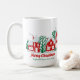This cute custom real estate holiday mug is perfect for realty business marketing. Customize these Merry Christmas mugs with your company name under the red houses covered in winter snow and lined with festive green trees.