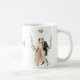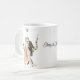 This custom name wedding coffee mug is shown with sample names and a bride and groom art print.