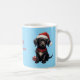 Cute Black Dog at Christmas with a Santa hat and scarf