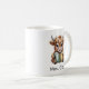Adorable highland cow wearing glasses and reading a book in a warm, cozy illustrated style. Perfect for coffee or tea lovers, bookworms, and teachers. A delightful mug gift for classrooms, libraries, or relaxing reading moments.