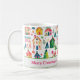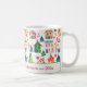 Las casas de Navidades que son festivas y coloridas decoran este divertido tazón de café de vacaciones. Pequeñas casas en la nieve blanca se mezclan con árboles de estrellas en esta agradable escena de senderos invertebrados. El patrón acuático tiene un origen retro, popular hasta el día de hoy. La tira de texto alrededor de la parte inferior es totalmente editable. Asegúrate de intercambiar las palabras para incluir los nombres de familia y la fecha que quieras, u otro saludo de tu elección si prefieres algo más que la "Feliz Navidad" que tenemos ahí.