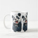 An expressive panda is shown with a massive, delighted grin, its mouth wide open to reveal a pink tongue and small teeth. Its large, bright brown eyes are wide with excitement, giving it a playful and friendly personality.