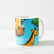 Relájate con esta adorable jarra de jirafa personalizado con dos alegres jirafas en una vívida y divertida escena de la jungla. Una jirafa sonríe alegremente mientras las otras rocas salen bajo un exuberante árbol verde, todo puesto contra un cielo azul soleado. Este colorido diseño de jirafa es perfecto para los niños, los amantes de los animales o cualquier persona que disfrute de divertidos safari. Ideal para el café matutino, el cacao caliente o como un regalo delicioso para los fanáticos de la jirafa, los amantes del zoo y los padres que decoran la habitación de un niño. Este ilustracion de jirafa aparece tanto en tazas como en camisetas, lo que lo convierte en un encantador y versátil favorito de impresión a pedido.