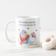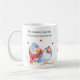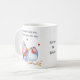 A cute, romantic Valentine’s Day coffee mug featuring two sweet love birds with the saying "The moment I saw you, I knew you were the one." Personalize with your names opposite the handle. All text can be customized with your own words. Perfect for that special girlfriend, boyfriend, partner or spouse. A lighthearted, adorable way to celebrate your love!