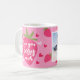 Cute mug with photo, strawberry illustration and modern hand written script lettering "Love you berry much". Strawberries and hearts pattern. Pink and red colors. Perfect for gift on Valentine's day. You can customize mug with your photo.
