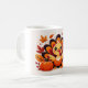 A cute Thanksgiving turkey mug featuring warm autumn colors and a cheerful character.