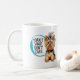 Este tierno Perro Yorkie tiene una burbuja que dice, "Yorkie Hair Don't Care", y espacio para personalizar el texto, "Yorkie Mom, Alimentado por el amor y el café". Es perfecto para el amante de los Yorkie.
