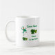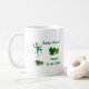 Cutest Clover Dancin en el Parche con un leprechaun bailarín y trébol en una taza de café.