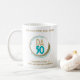 Commemorative DA50 mug design in gold and teal to celebrate the 50th anniversary of Debtors Anonymous at the 2026 Worldwide Virtual Convention.