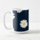 Echa un vistazo a este diseño con un patrón suave de margarita sobre un azul marino oscuro.