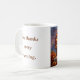 Den las gracias cada mañana con esta hermosa llegada de la taza de café de Acción de Gracias. Tenga en cuenta que el texto es personalizable y/o extraíble si sólo desea mostrar la imagen. Siéntete libre de contactarme y haré las modificaciones por ti si lo deseas. La imagen se generó en Leonardo.ai, y luego fue realzada por mí. Acá un enlace a una hermosa tarjeta de vacaciones que hice usando esta imagen en mi otra tienda RosartDesigns: https://www.zazzle.com/the_arrival_of_thanksgiving_holiday_card-256493050375058637