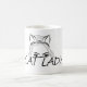 Un simple ilustracion de b&w de una mujer con juguetones orejas de gato mirando por las palabras "Gato Dama".