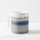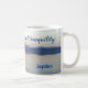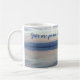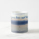 Este hermoso tazón de té/café presenta una foto evocadora en tonos suaves de azul y gris. Una garza solitaria vuela sobre el mar, su reflejo más abajo. El mar es tranquilo y las colinas se ven al otro lado de la bahía. Es una escena pacífica y tranquila. Las palabras "Dame paz, amor y tranquilidad" están escritas en el guión en el centro de la taza, y puedes personalizarla con tu nombre a un lado.