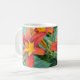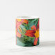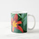 Las flores de lirio del día brillantes iluminan la sólida taza de café de cerámica. ¡Ideal para tomar un café o un té!