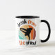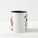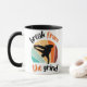 Una taza de café que presenta la frase "Rompe con la rutina" en letras negritas, acompañada de una gráfica de un bailarín de break dance en acción, simbolizando energía, libertad y expresarse a través del movimiento.