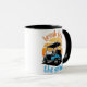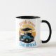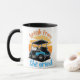 Una taza de café con un carrito de golf, con la frase "Descanso de la rutina" centrada alrededor de la imagen. El diseño sugiere una escapada relajante y tranquila de los estrés diarios.