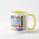 Taza de café que ofrece su nombre en un diseño único. El tamaño perfecto para su bebida preferida de la mañana o brew de última hora. Grande, manija del fácil-apretón.