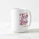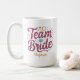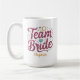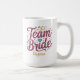 Nuestra taza de café personalizada presenta la frase "team bride" en tipografía de glitter con elementos caprichosos en burgundy, aqua y oro para un regalo divertido de despedida de soltera para tus damas de honor para celebrar tu era de novia.