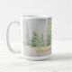 una escena nevada repetida a través de esta taza y a través de la nieve dice "caminar en un maravilloso país invernal". haría un divertido regalo para ti mismo o a alguien que conoces, arte original y diseño de Kristina Anderson