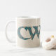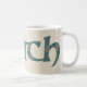 Una taza de café de la diversión con la palabra "cwtch" Galés, significando la "abrazo" o el "abrazo", en una escritura céltica, llenó de un modelo elegante de Paisley en un fondo de la lino-mirada.