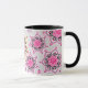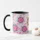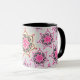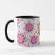 Estampado de plores negro y rosado del loto en fondo gris pálido. ¡Comience su mañana con un poco zen del o! Los estilos y los colores son adaptables. Vea nuestras tazas a juego del café y del viaje.