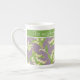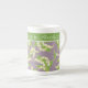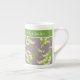 Una taza de café bonita de la porcelana de hueso a personalizar, con un modelo del estilo de Nouveau del arte de Lirio-de- Valley en un fondo de color de malva; "para el amor de la colección elegante y Painterly de los lirios".