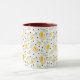 Las manzanas y las semillas estilizadas dispersaron en una taza de café acentuada con la manija y el interior rojos.